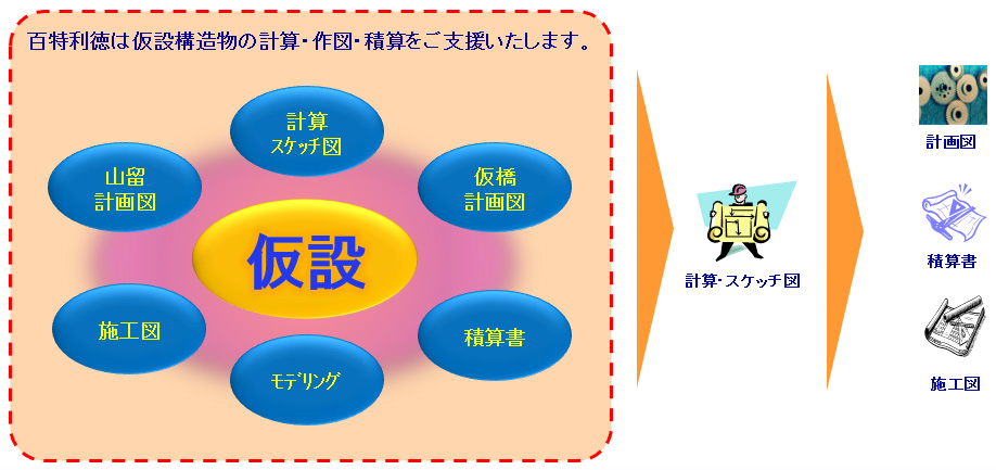 コンピュータ支援による日本の仮設構造物(鋼製山留?桟橋?仮橋等)業務の計算?作図?積算等のサービスをご提供しております。