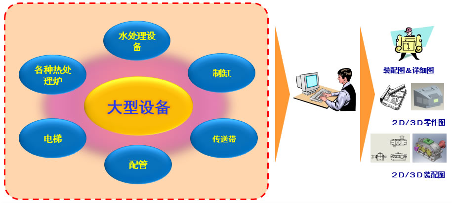 我們使用多種設計軟件,為客戶提供各種大型機械設備,汽車熱處理設備,電梯,水處理設備等的設計工作。